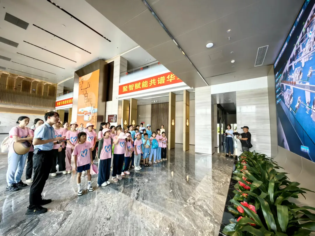 活动一开始,孩子们便迫不及待地踏入了德扑之星药业集团的大厅。3D数字化看板上的生动画面,让孩子们仿佛置身于一个充满科技与创新的现代制药工厂。他们瞪大眼睛,好奇地观察着每一条生产线、每一台设备,听着讲解员介绍德扑之星药业的儿药发展历程。